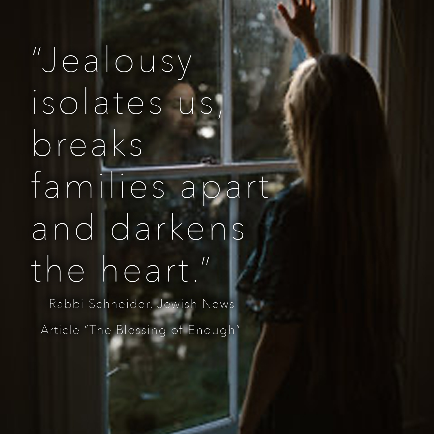 It’s a pattern. Jealousy isolates us, breaks families apart and darkens the heart.